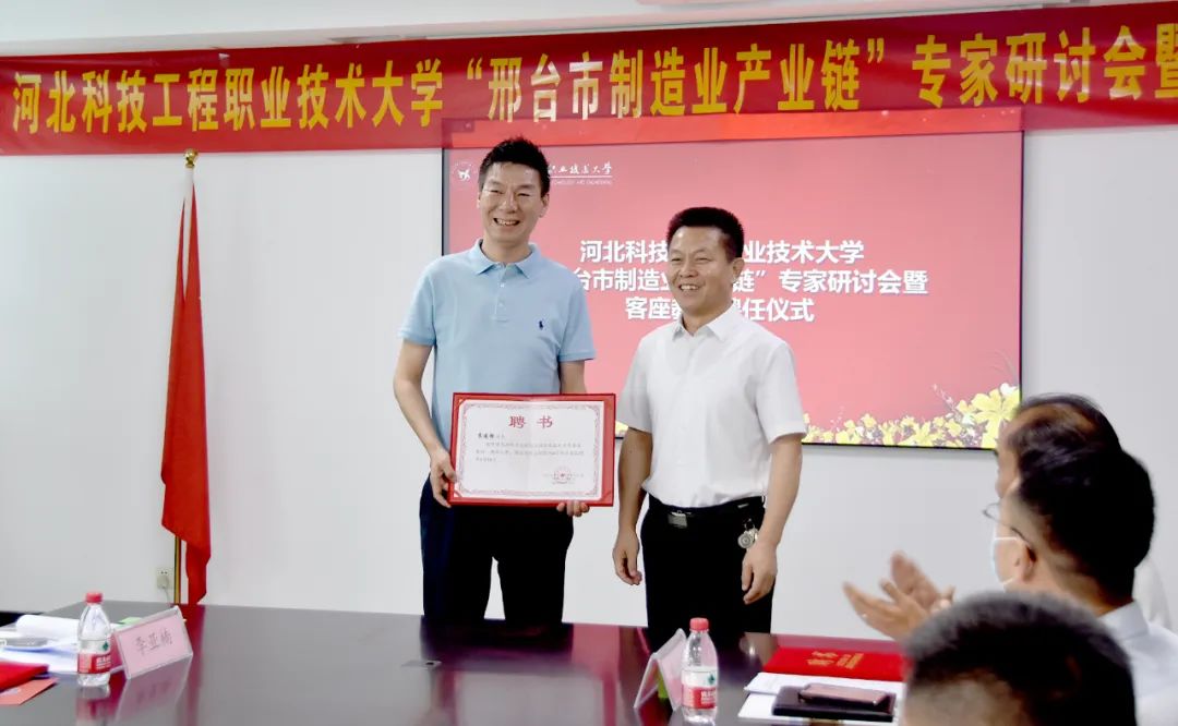 董事长袁建强被河北科技工程职业技术大学聘为客座教授6月10日下午,河北科技工程职业技术大学举办了“邢台市制造业产业链”专家研讨会暨客座教授聘任仪式,中...